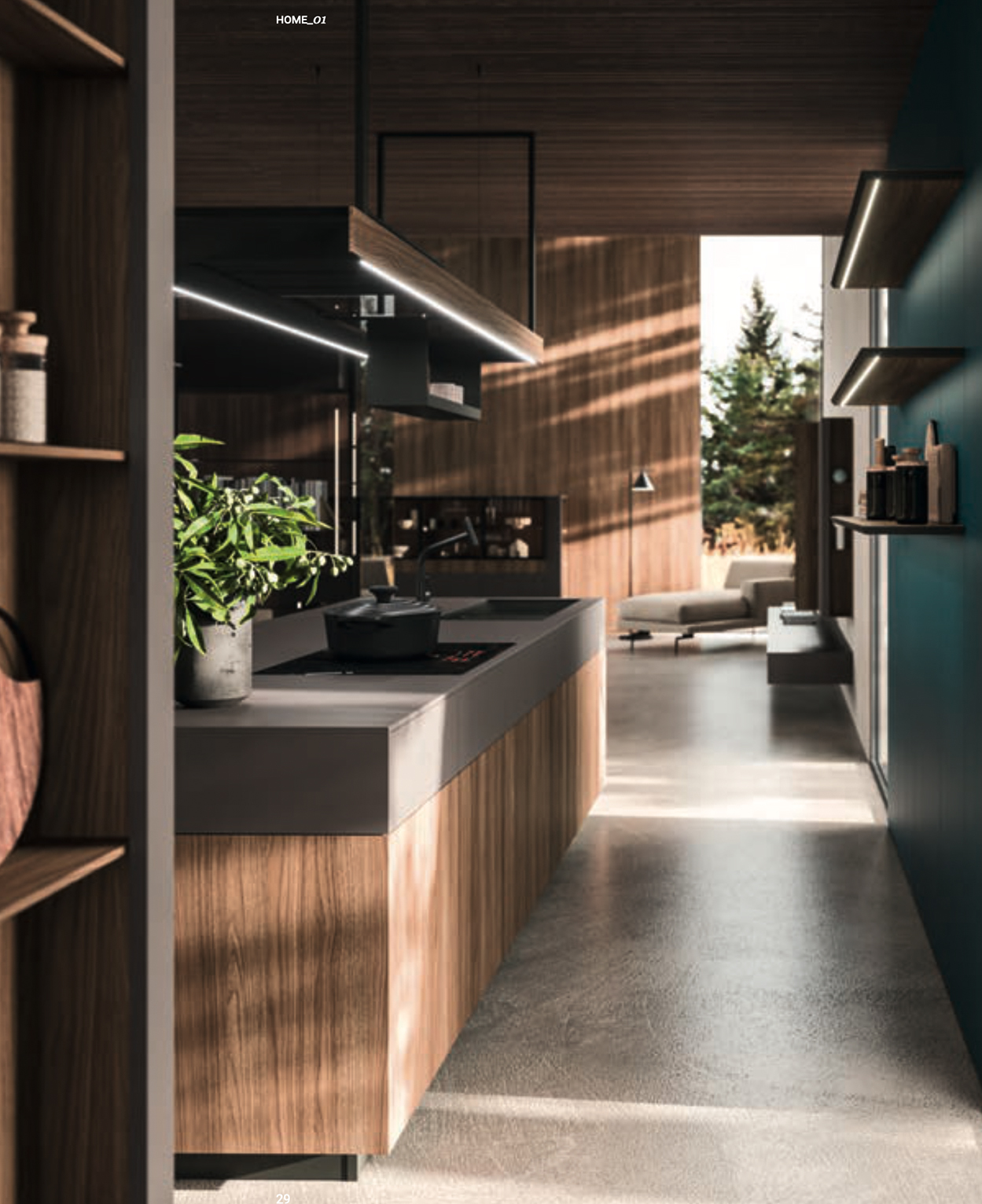 Chaque personne souhaite une maison qui la fasse sentir chez soi. Un lieu qui reflète ses besoins,son style, qui fasse place à ses rêves ainsi qu’à la réalité du quotidien. La cuisine et la zone living sont les pièces destinées à remplir la double fonction de nid intime et protecteur,ainsi que d’espace convivial, ouvert à la socialité.
