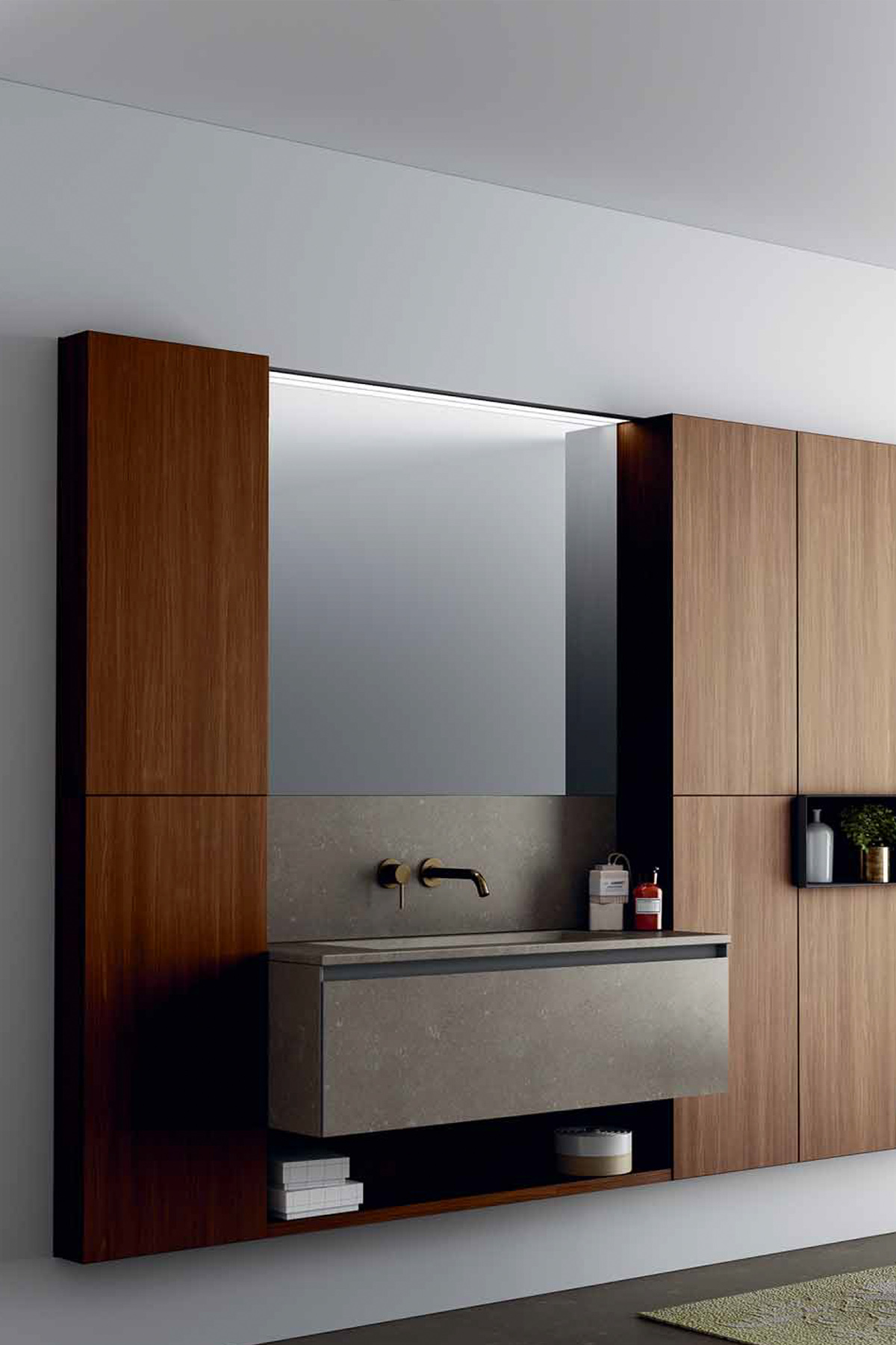 Nous travaillons des matériaux nobles, résistants à l’humidité, dans une palette de teintes harmonieuses. Lignes pures, rangements intégrés, éclairages maîtrisés : chaque détail contribue à l’équilibre de l’ensemble.